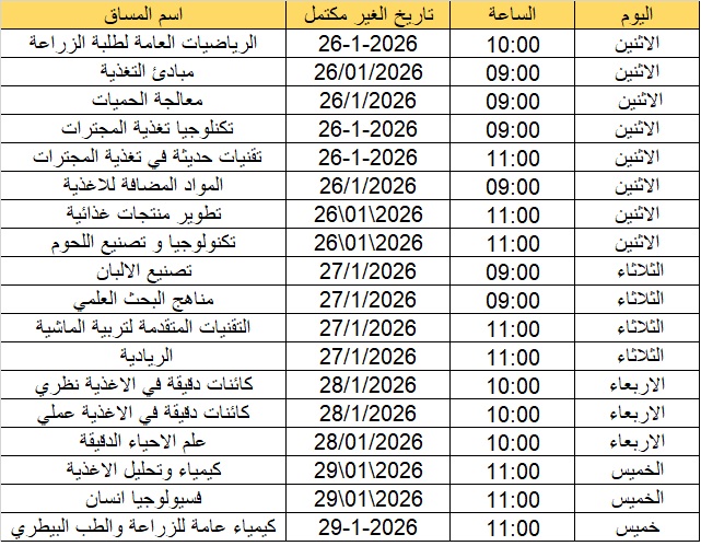 الامتحانات النهائية الغير مكتمل للفصل الاول 2025 دائرة الهندسة الزراعية